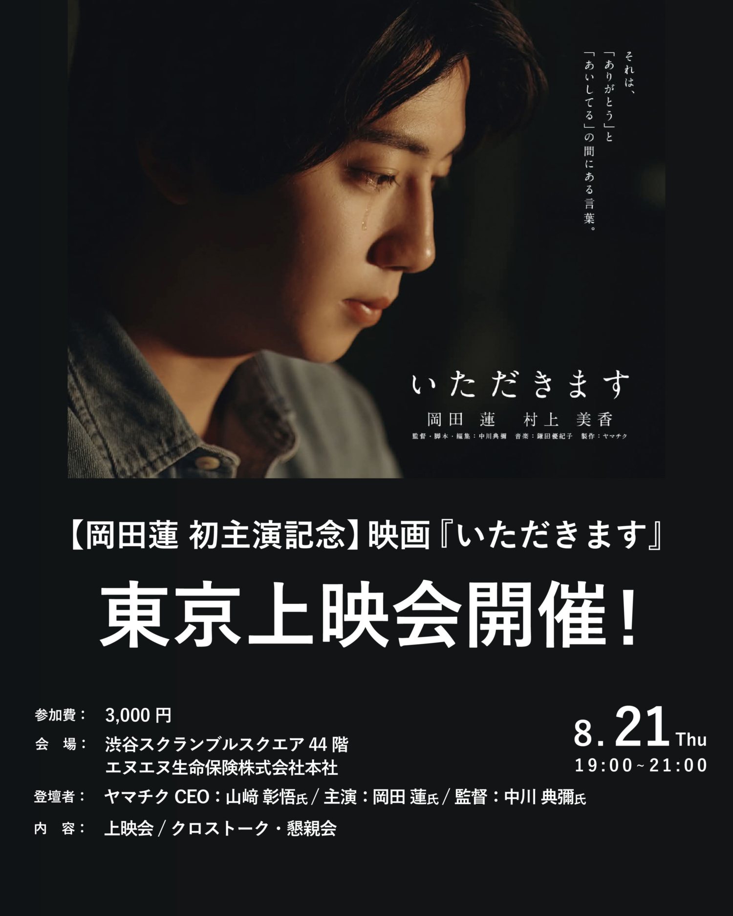 当日は主演俳優・岡田蓮さん、監督・中川典彌さんをお迎えして、ヤマチク代表・山﨑と制作秘話や想いをたっぷり語っていただくクロストークを予定。