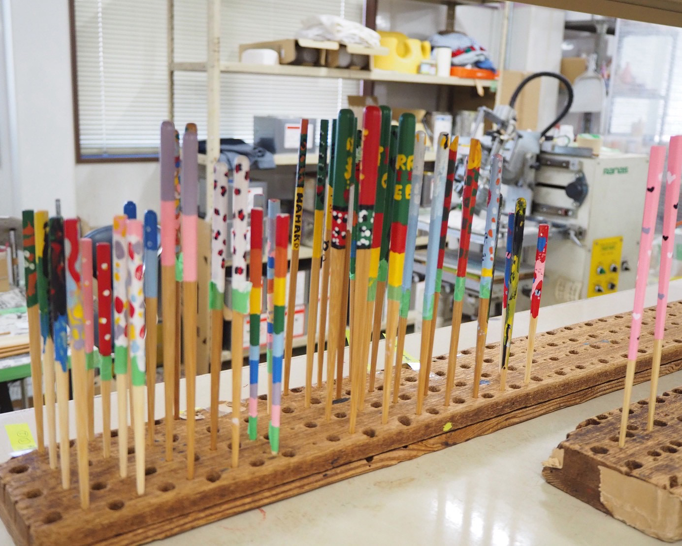 ヤマチクのワークショップではお箸の色塗り体験もできます。