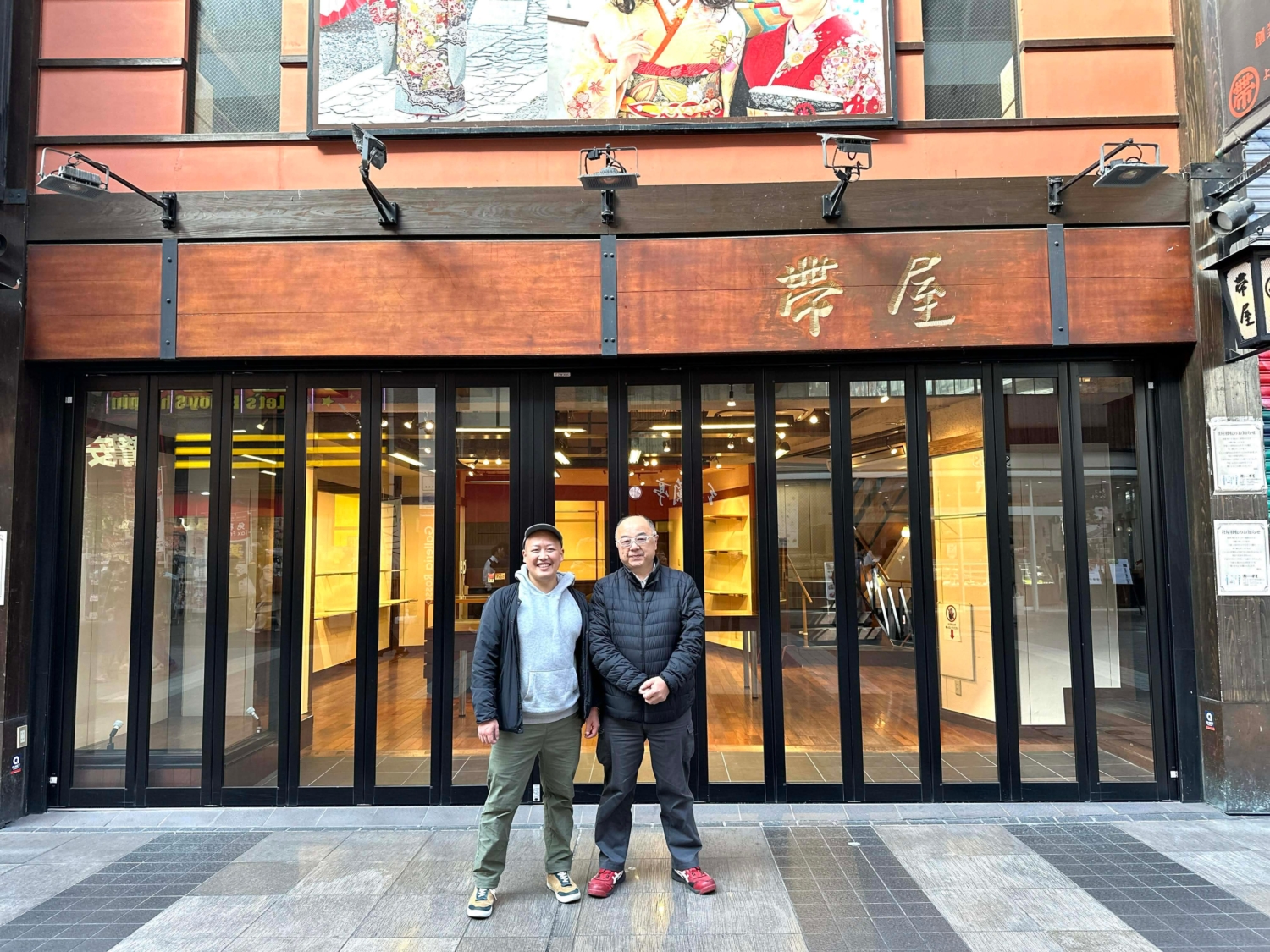 (左から順)弊社代表山﨑、帯屋6代目社長宮崎氏
