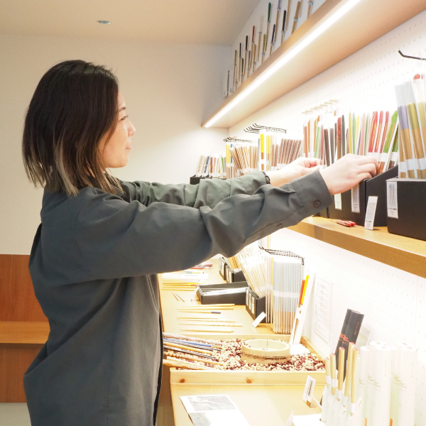 【出荷スタッフ】(入社9年目)女性 ①入社したきっかけは? きっかけは、幼い頃に祖父がヤマチクの内職をしていたことです。 祖父が作っていたお箸を身近に感じながら育っていたので、自然とヤマチク -
